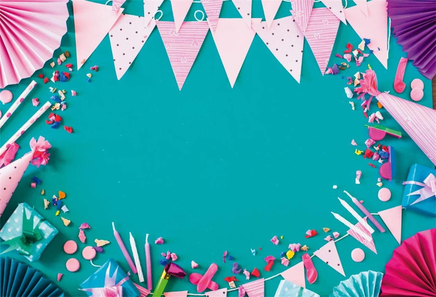 Amazon Com Laeacco 8x6 5ft Vinyl Birthday Photography Background Colorful Party Accessories Frame Teal Backdrop Child Kids Baby Birthday Party Banner Newborn Shoot Childish Wallpaper Studio Camera Photo