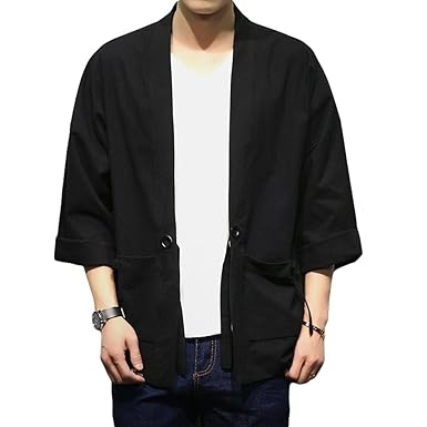 Mens Kimono Cardigan Jacket Yukata Coat Cotton Blends Linen Oversize Asian Size 4xl Chest 50 3 Black 1 Buy Online At Best Price In Uae Amazon Ae