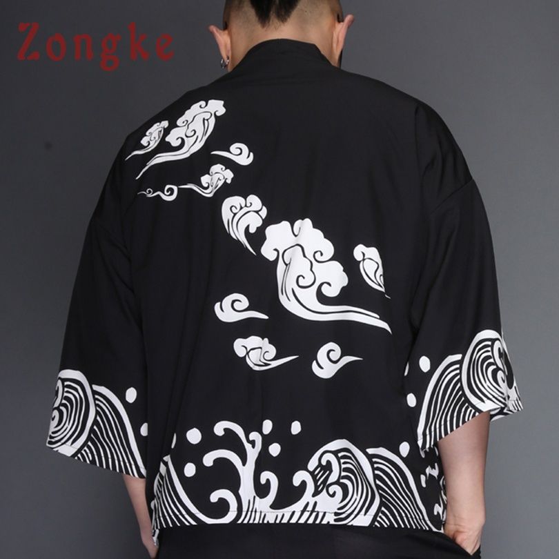 Zongke Japanese Kimono Cardigan Men Wave Print Summer Long Kimono Cardigan Men Black Male Jacket Coat 2018 Coat For Mens Mens Jackets Coats From Fitzgerald10 16 22 Dhgate Com