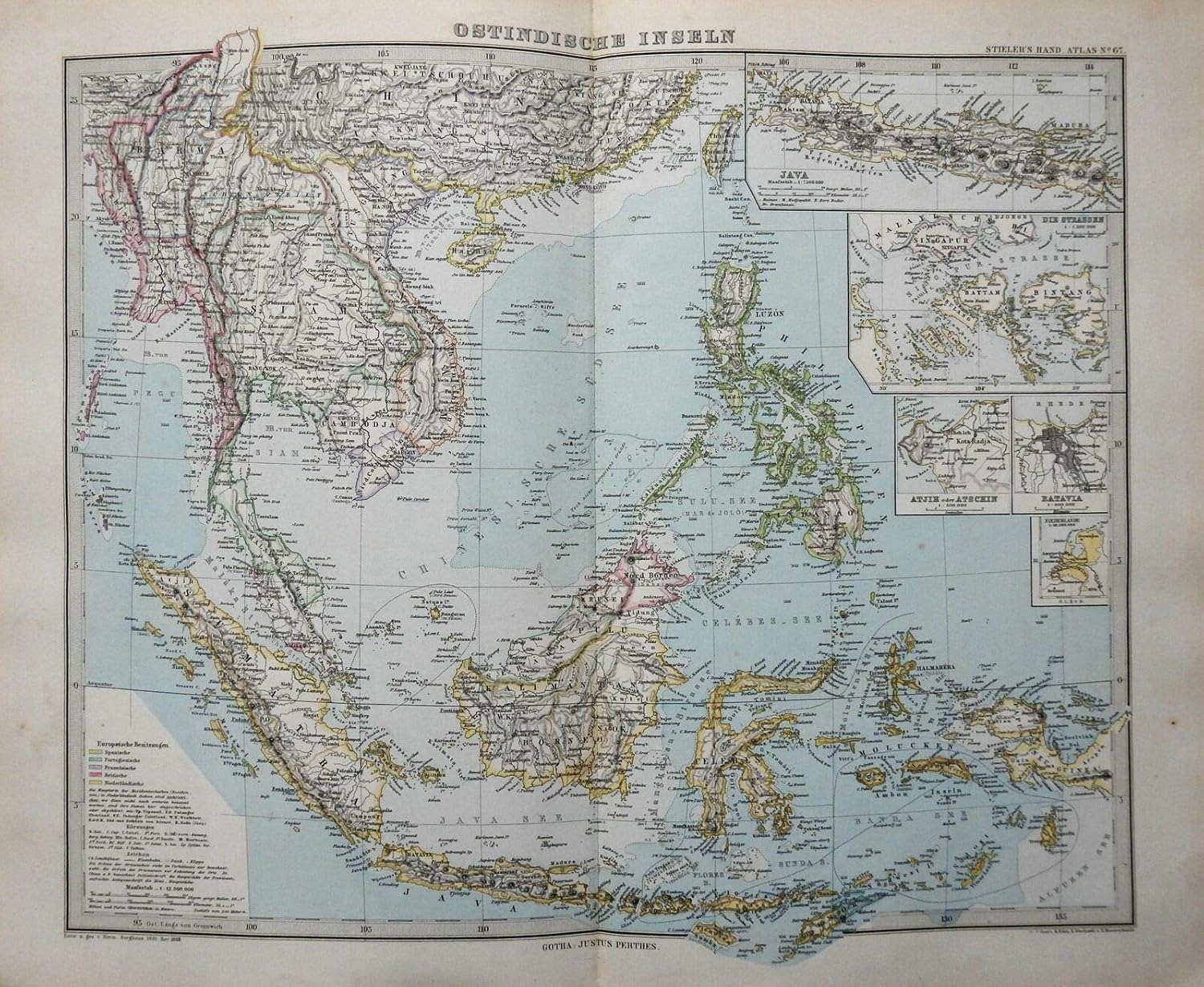 Amazon Com East Indies Malaysia Java Philippines Borneo Celebes 1884 Stieler Detailed Map Entertainment Collectibles