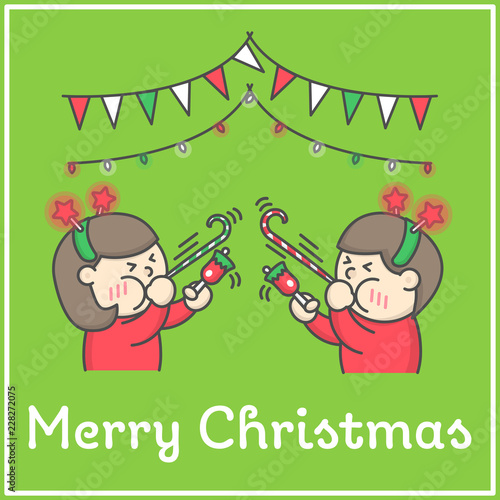 Kids Ringing Bells And Blowing Festive Whistle Ribbon Party For Merry Christmas Celebration Flat Cartoon Design For Book Decoration And Design Elements Vector Illustration Buy This Stock Vector And Explore Similar