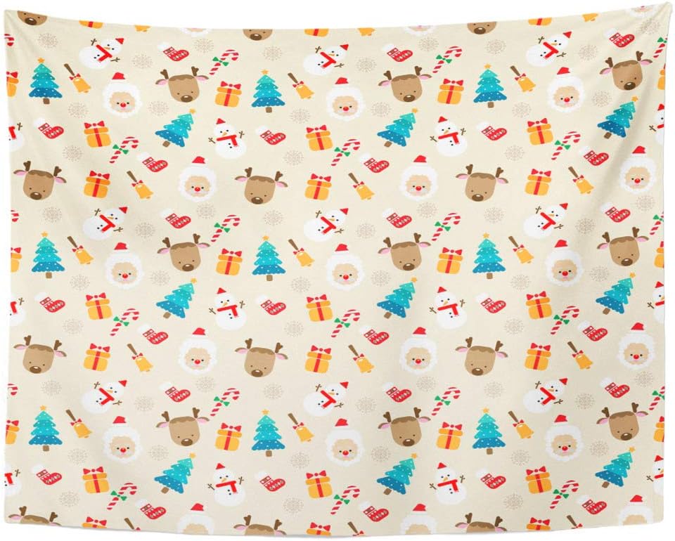 Amazon Com Emvency Wall Tapestry Cartoon Merry Christmas Celebration Composition Cute December Deer Decor Wall Hanging Picnic Bedsheet Blanket 60x50 Inches Home Kitchen
