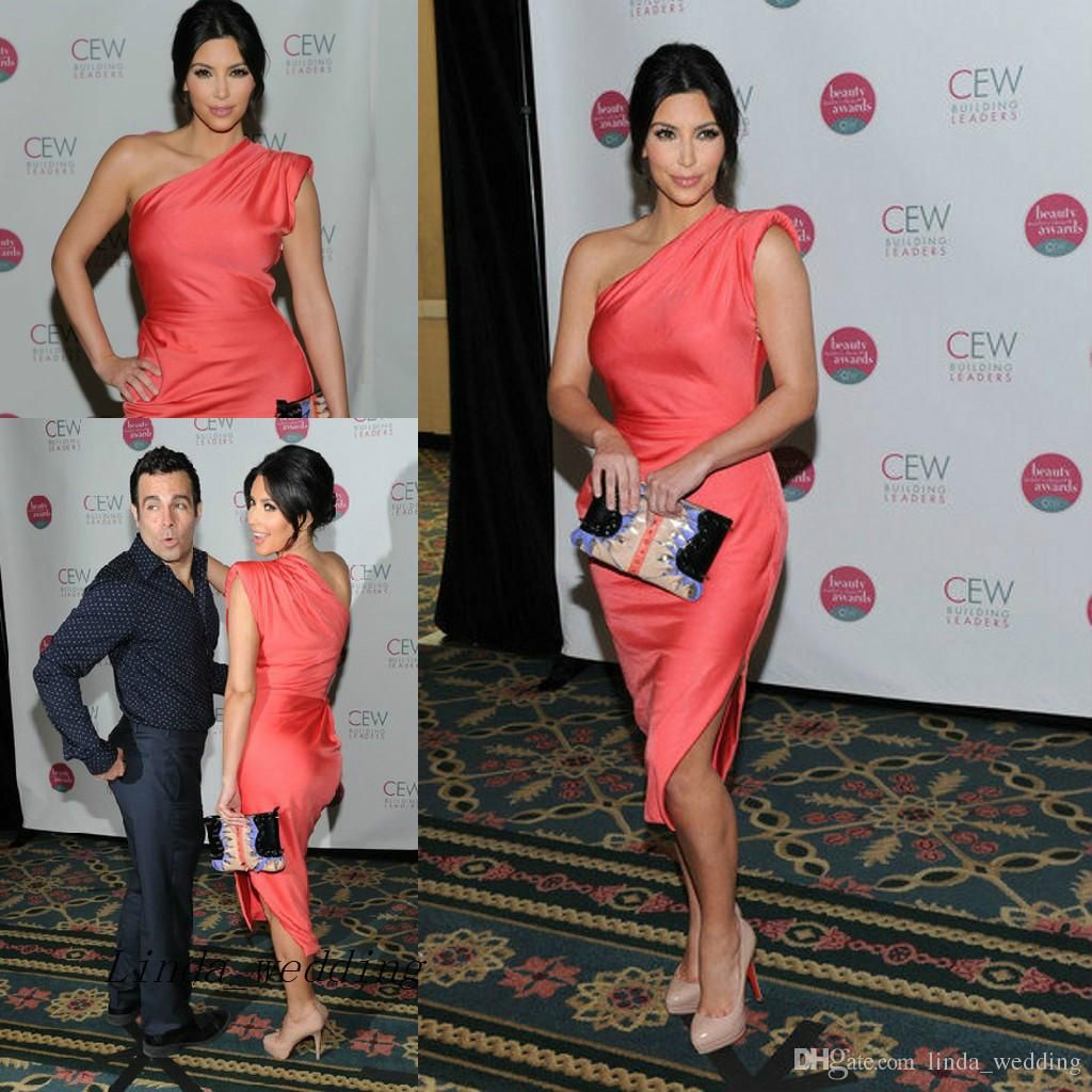 Coral Colour Celebrity Kim Kardashian Evening Dress One Shoulder Red Carpet Short Prom Dress Party Gown Evening Dresses Elegant Grecian Evening Dresses From Always Love 493 51 Dhgate Com