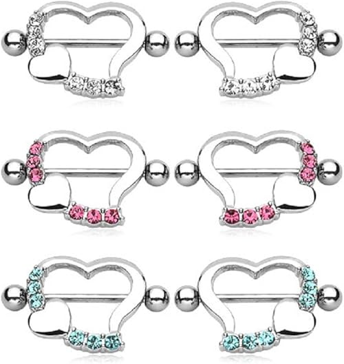 Amazon Com Pierced Owl Heart Shaped Nipple Shields Rings Barbell Barbells 14g 316l Stainless Steel Sold As A Pair Aqua Gemmed Jewelry