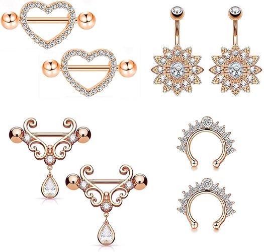 Yadoca 5 Pairs Stainless Steel Nipplerings Nipple Rings Tongue Ring Cz Barbell Heart Shape Rings Body Piercing Jewelry Set For Women Girls Amazon Co Uk Jewellery