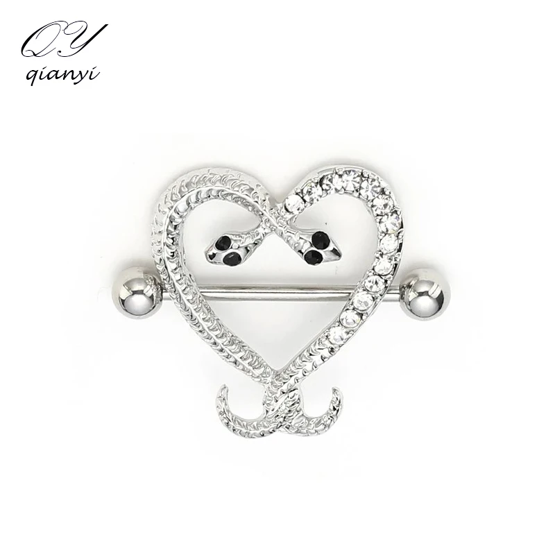 Double Snake Head Nipple Piercing Sexy Serpentine White Pink Heart Shaped Nipple Rings Body Jewelry Women Bar Barbell Piercing Barbell Piercing Body Jewelryheart Shaped Nipple Ring Aliexpress