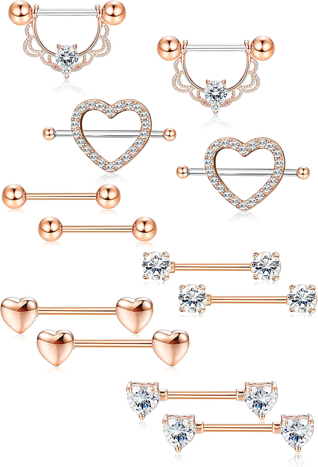 Amazon Com Irbingnii Nipple Rings For Women Rose Gold Nipple Piercings Two Layers Heart Nipple Jewelry 14g Surgical Steel A Pair Rose Gold Heart Jewelry