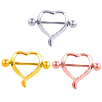 Amazon Com Pair Of 316l Surgical Steel 14 Gauge Nipple Rings Piercings Straight Barbells Nipplerings With Heart Shaped Shields And Balls Closures Beauty