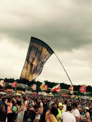 Someone Made A Huge Flag Of Kim Kardashian Giving Ray J Head And Waved It During Kanye West Glastonbury Set Sick Chirpse