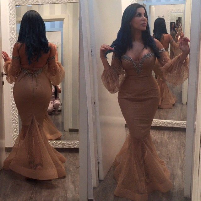 Sexy Champagne Mermaid Prom Dresses Vestidos De Festa Backless Crystal Kim Kardashian Dress Side Split Long Celebrity Gowns Dress Cat Gown Couturegown Evening Dress Aliexpress