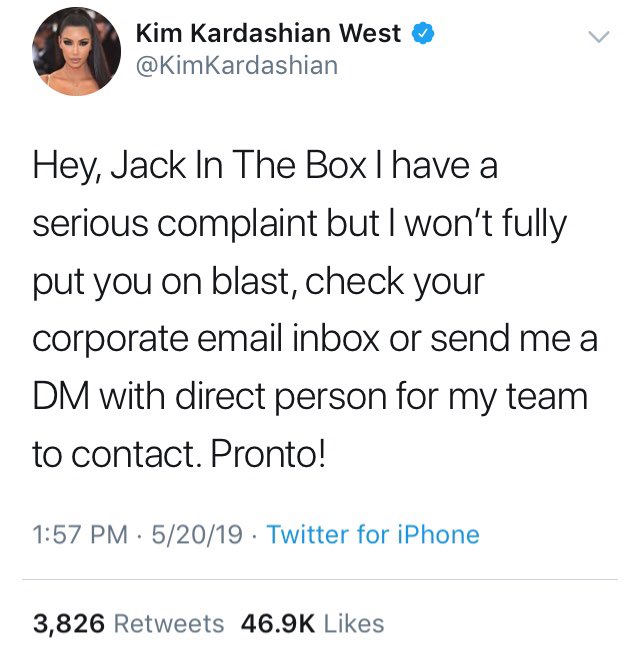 Jack In The Box Slammed After Kim Kardashian S Mysterious Complaint Business Insider