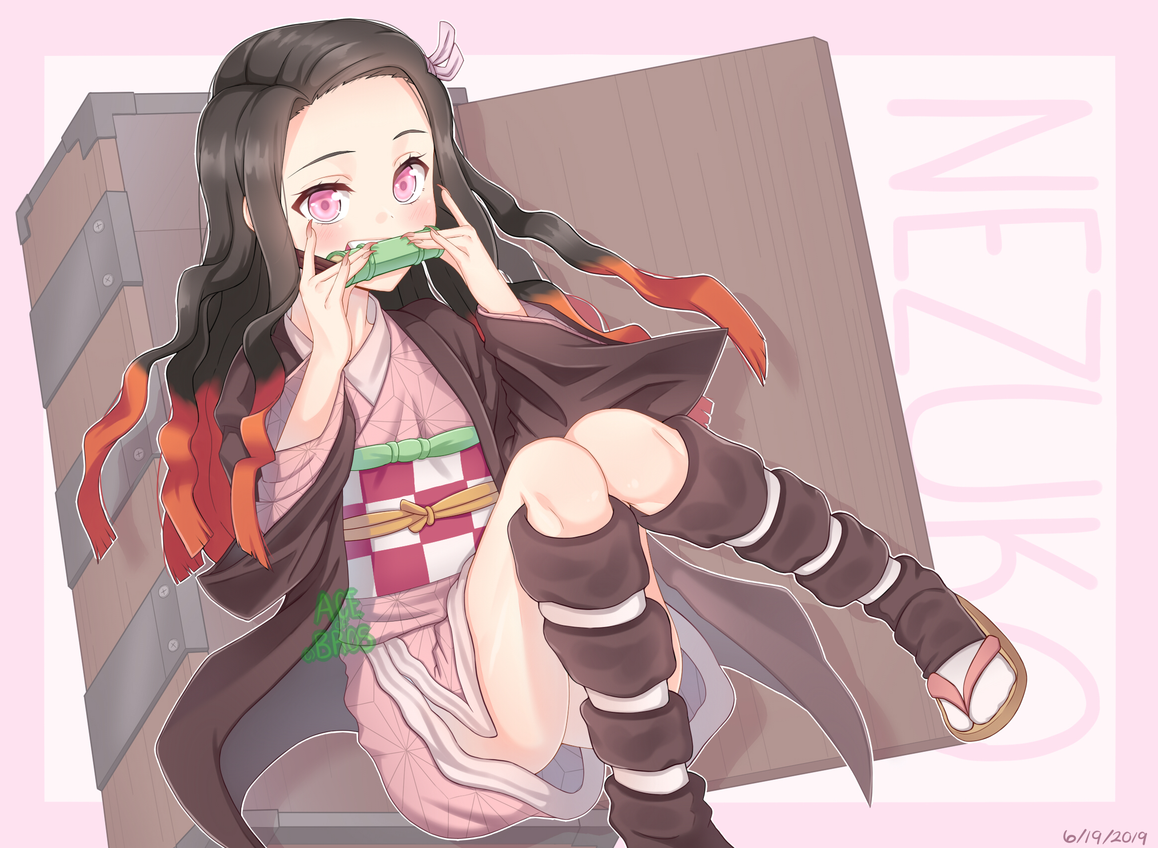 Kimetsu No Yaiba Kamado Nezuko Japanese Clothes Skirt Lifting Japanese Kimono Black Hair Fan Art 2d Digital Art 2800x1750 Wallpaper Wallhaven Cc