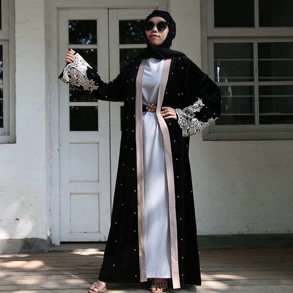 Black Lace Velvet Abaya Kimono Cardigan Dubai Hijab Muslim Dress Women Turkish Islam Clothing Kaftan Abayas Caftan Robe Kleding Miaomall Shopee Malaysia