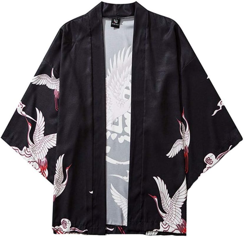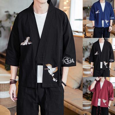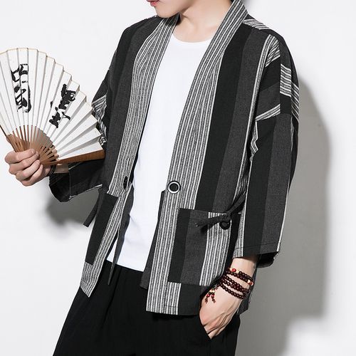 Blfgncob Men S Japanese Fashion Kimono Cardigan Haori Jacket Yukata Open Front Plus Size Traditional Coat Seven Sleeves Loose Amazon Co Uk Clothing
