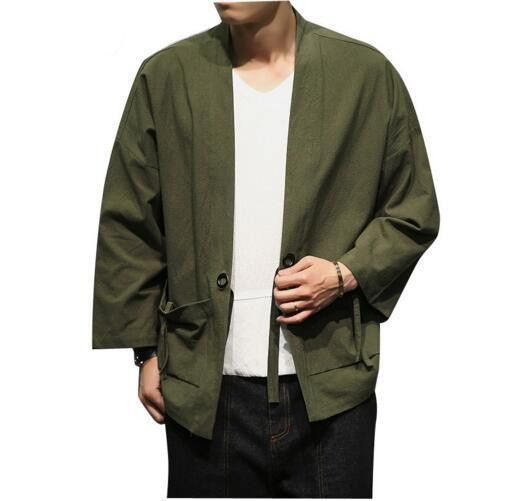 Army Green Cardigan Men Clothing Cotton Cardigan Jacket Male Streetwear Fashion Hiphop Casual Coat Loose Kimono Jacket Blowuponlinevintage On Artfire