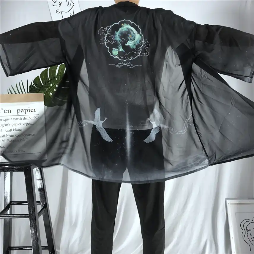 Chinese Style Kimono Cardigan Men Crane Printed Long Black Kimono Cardigan Men Shopee Malaysia