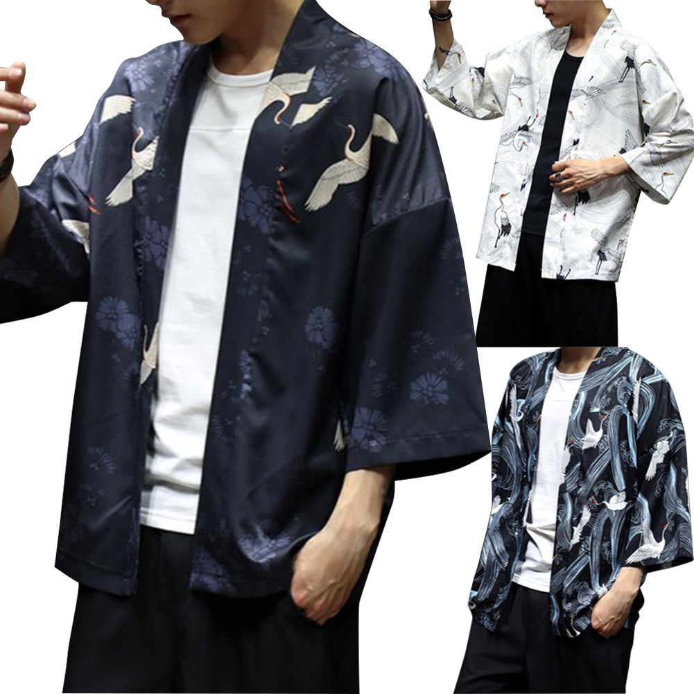 Price and other details may vary based on size and color zaful mens moon wolf flying crane sea waves printed kimono front open jacket cardigan. Price and other details may vary based on size and color mage male mens summer luxurious kimono soft satin robe with shorts nightgown long sleeve pajamas printed bathrobes. Kimono cardigan shirts for men women.