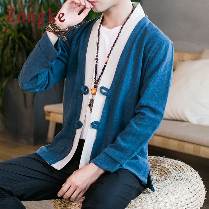 Qoo10 New 2020 Autumn New Men S Chinese Style Cotton Linen Coat Loose Kimono Men S Clothing