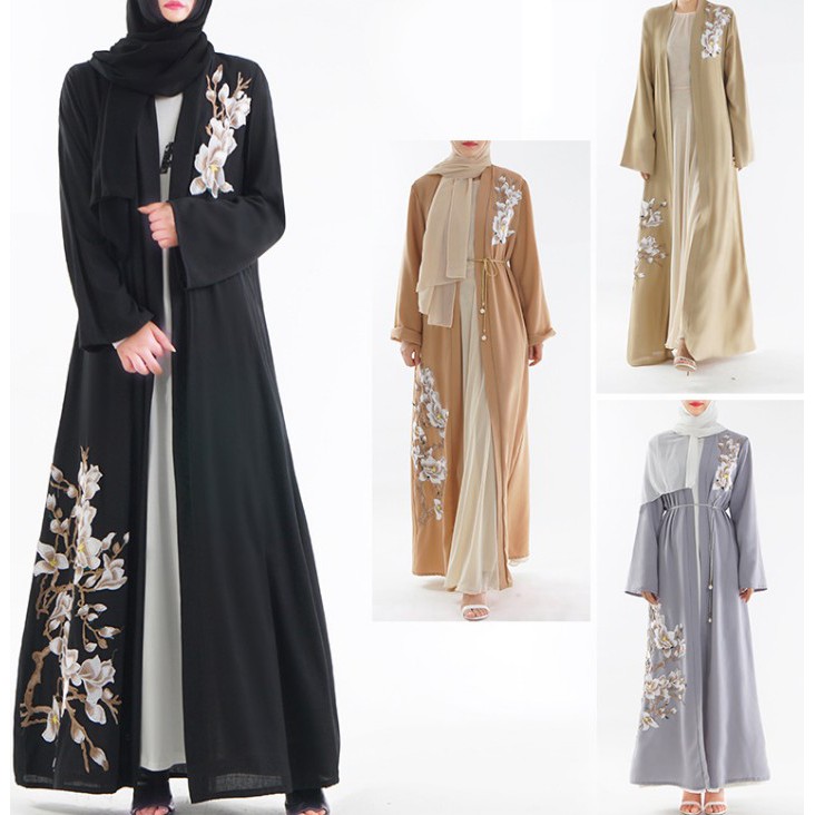 Elegant Muslim Floral Abaya Dress Flowers Loose Cardigan Long Robe Gowns Kimono Jubah Ramadan Arab Thobe Islamic Prayer Clothing Islamic Clothing Aliexpress