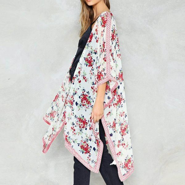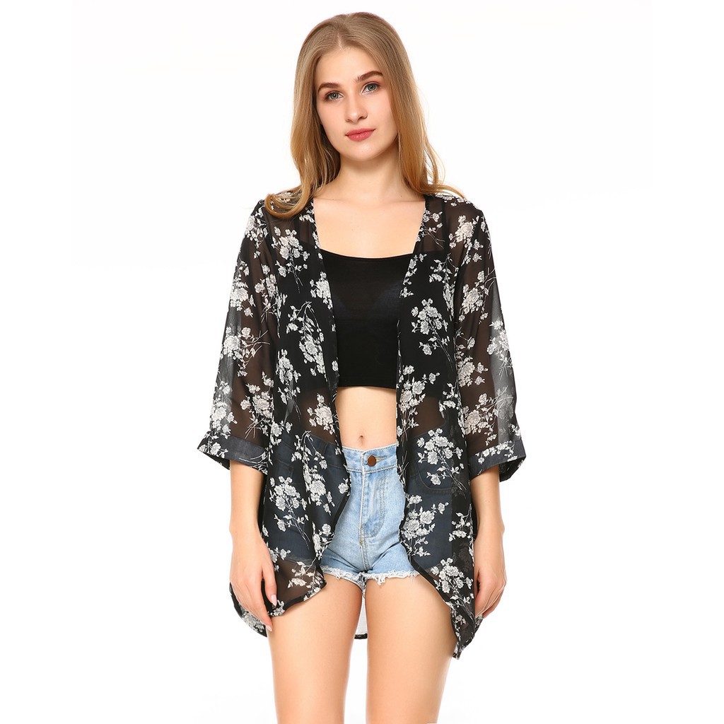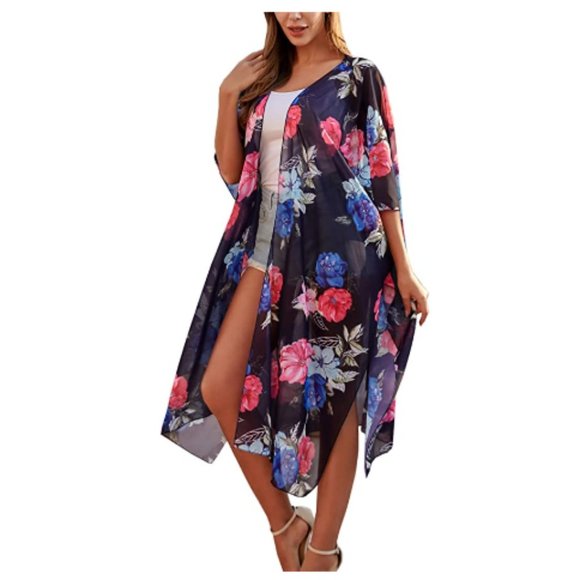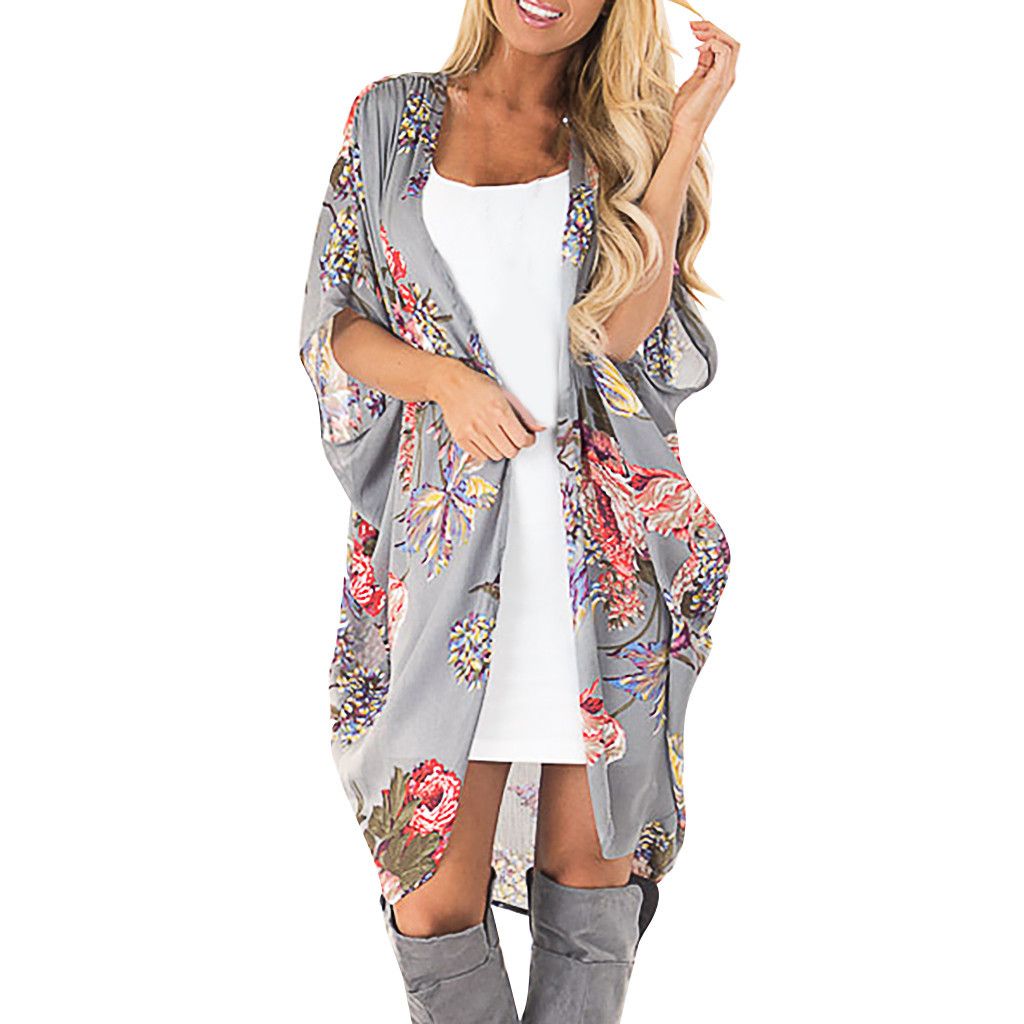 Floral Women Blouse Fashion Casual Chiffon Kimono Summer Long Cardigan Jacket Fashion Kimono Cardigan Womens Kimono
