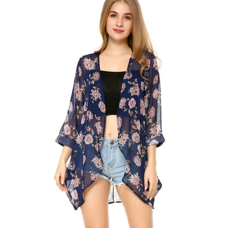 Cinshein Women S Chiffon Kimono Sheer Cardigans For Women Open Front Floral Kimonos Cardigan Blouse Loose Tops Beach Cover Up At Amazon Women S Clothing Store