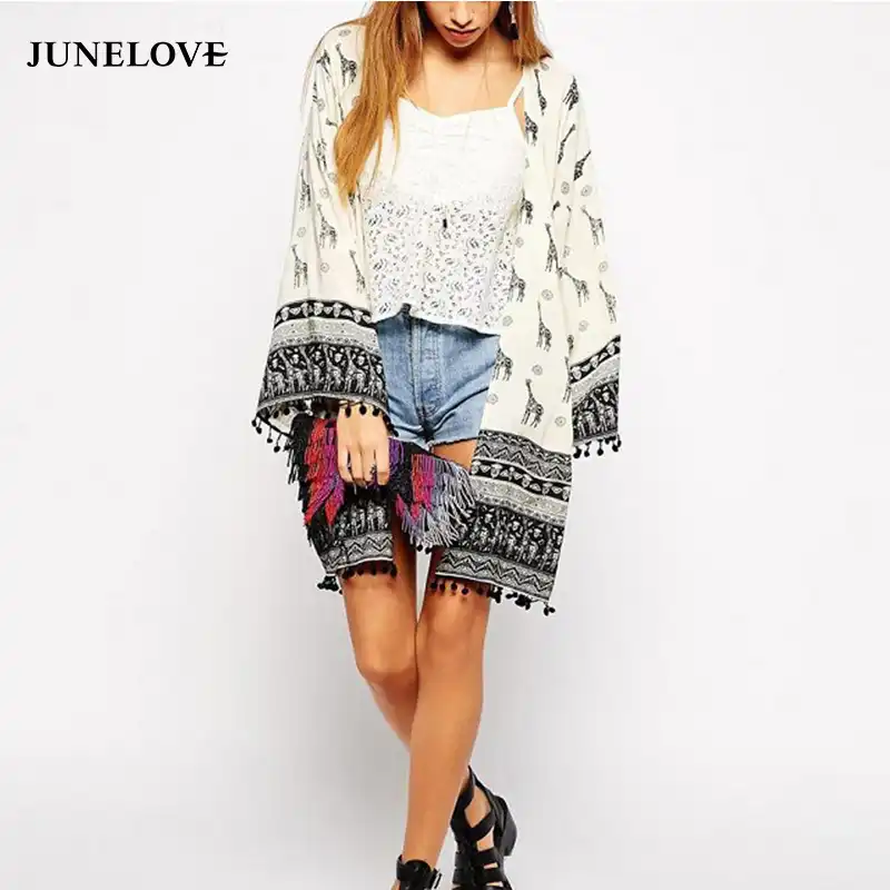 Junelove 2019 Boho Kimono Blouse Shirt Women Vintage Printed Shirt Female Casual Tassels Kimono Shirt Batwing Sleeve Blusas Kimono Blouse Boho Kimonoshirt Female Aliexpress