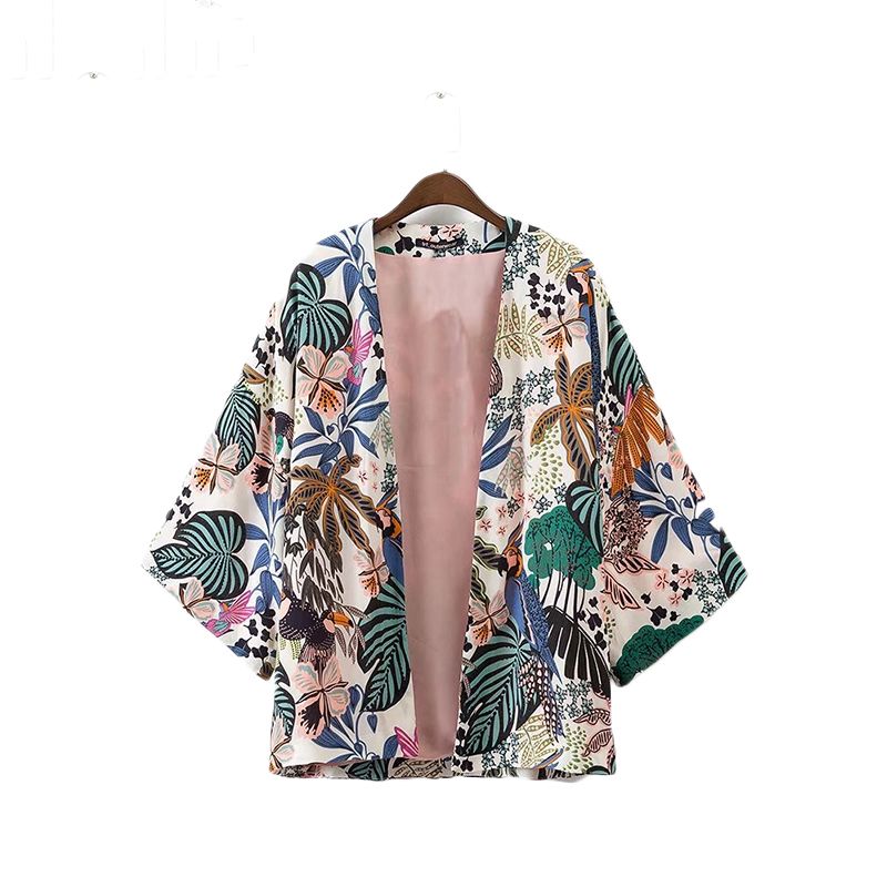 Batwing Sleeve Chiffon Blouse Women Casual Floral Print Loose Kimono Shirts Big Size Beach Tunic Tops