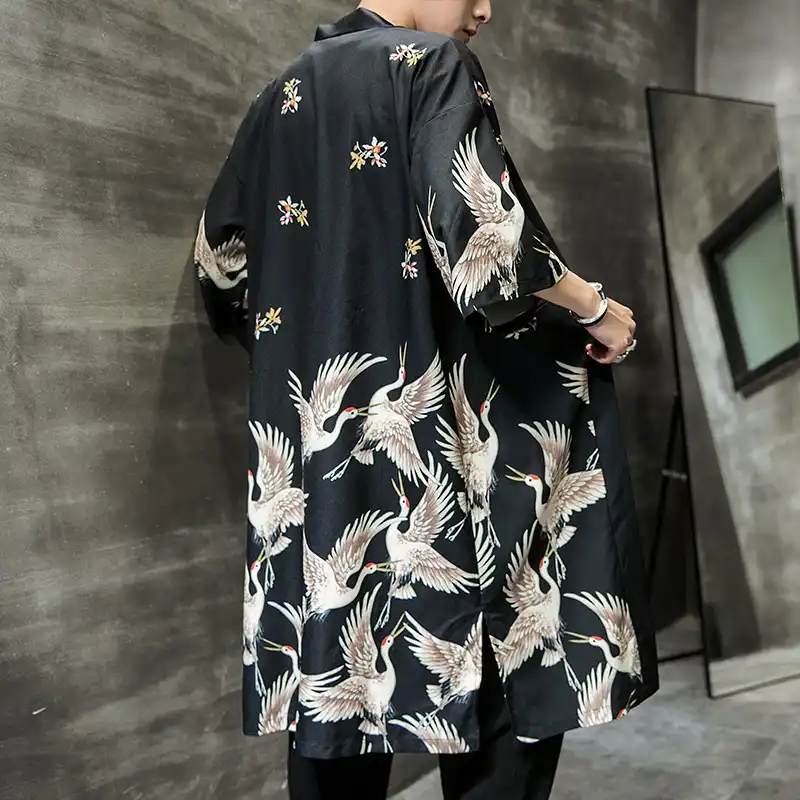 Prijouhe Men S Kimono Cardigan Jacket Japanese Style Flying Crane Seven Sleeves Open Front Coat At Amaz Male Kimono Casual Shirts For Men Mens Fashion Cardigan