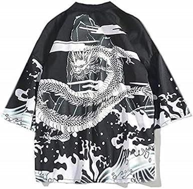 Zongke Japanese Kimono Cardigan Men Dragon Print Long Kimono Cardig