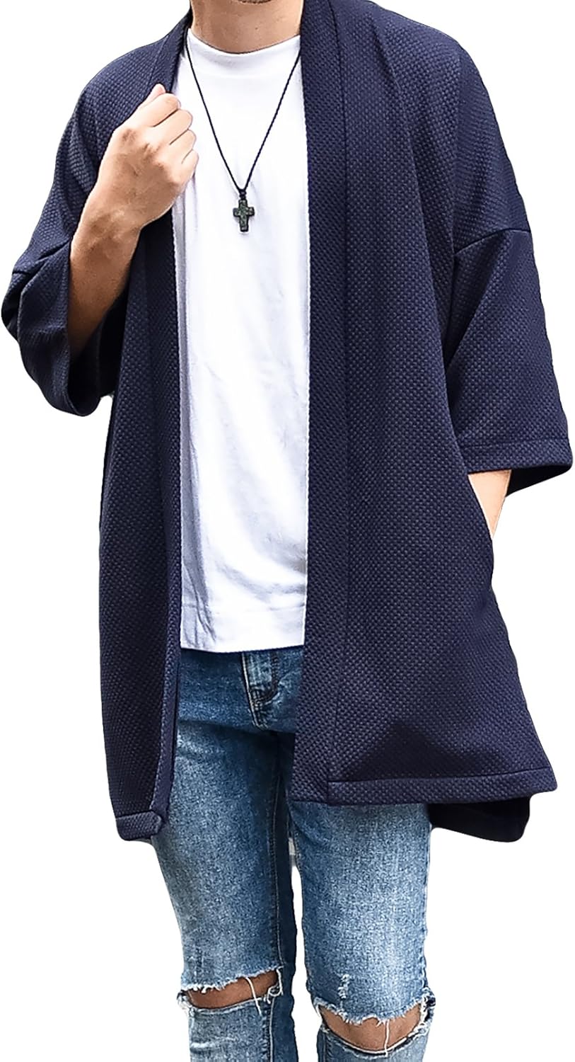 Men Japanese Short Sleeved Kimono Cardigan Yukat Coat Loose Cardigan Jacket Top At Amazon Men S Clothing Store