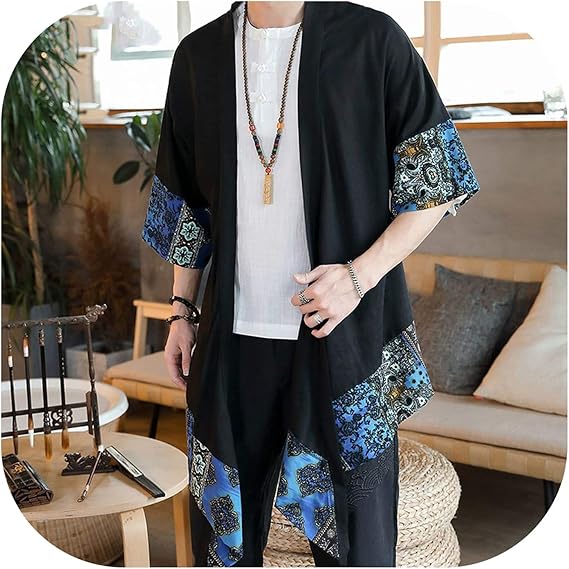 Patchwork Floral Chinese Kimono Shirt Men Long Kimono Cardigan Men Shirt Japanese Kimono Men Blouse Summer Size M Color Color 1 Mens Fashion Sweaters Mens Fashion Casual Kimono Shirt