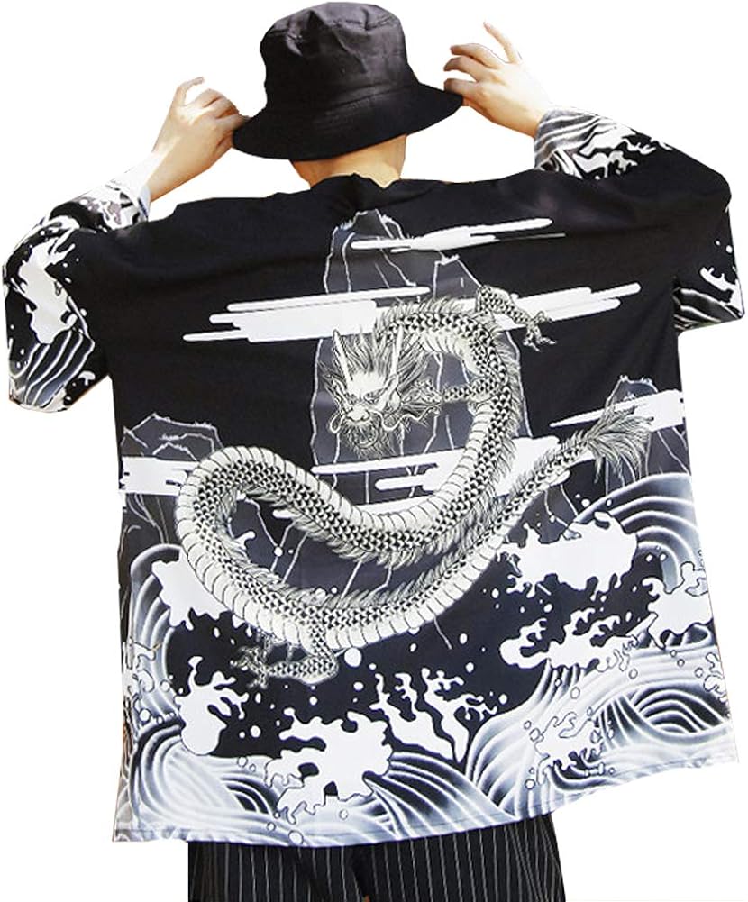 Men S Japanese Kimono Cardigan Casual Dragon Pattern Yukata Open Front Coat At Amazon Men S Clothing Store