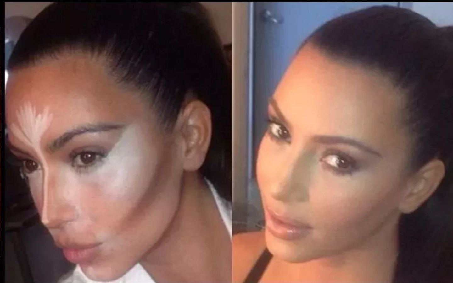 Makeup Trick In Action How Kim Kardashian Sculpted Her Face With Highlighter Glamour