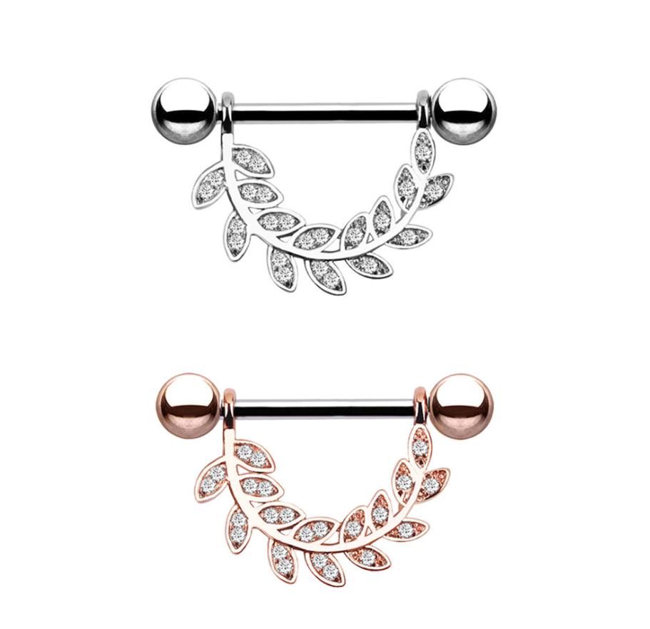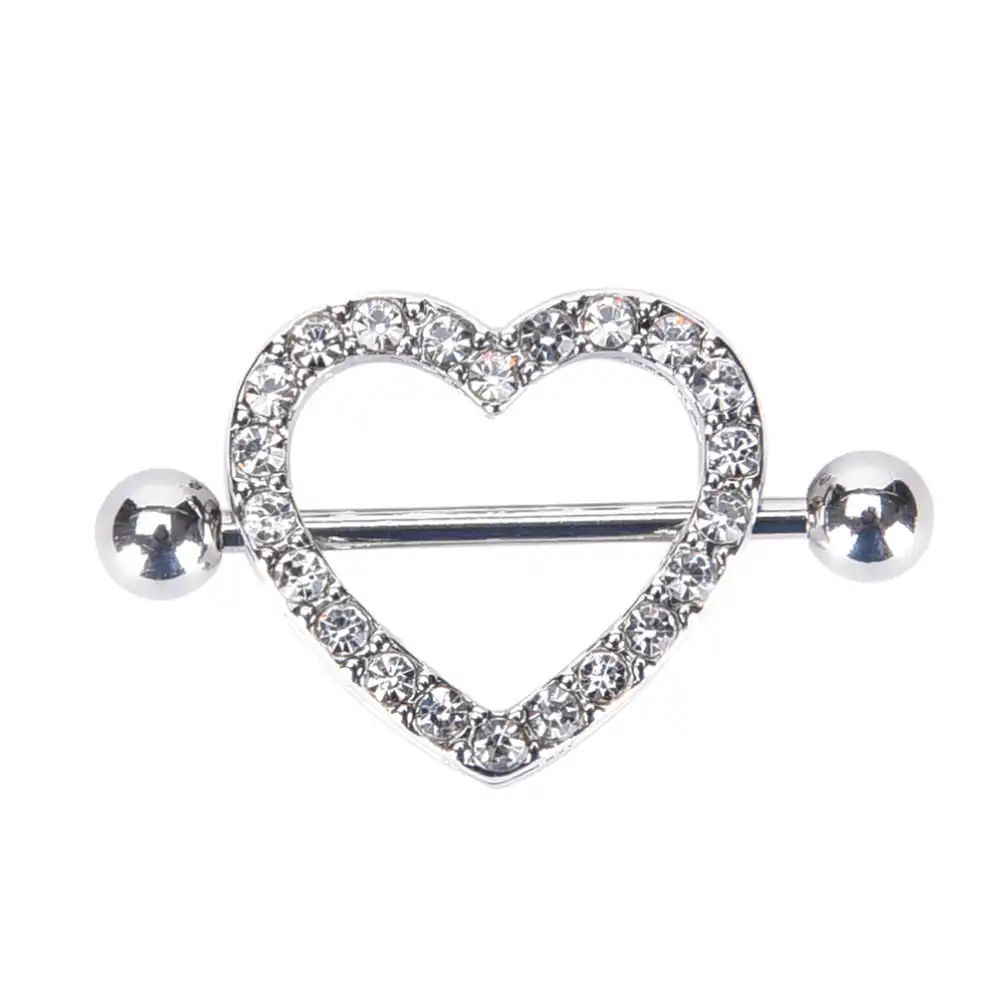 Surgical Steel Nipple Piercing Clicker Hearts Crystals Piercings