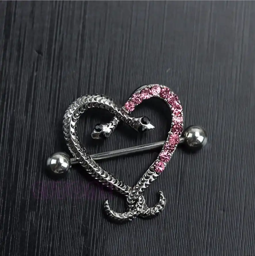 Double Snake Head Nipple Piercing Sexy Serpentine White Pink Heart Shaped Nipple Rings Body Jewelry Women Bar Barbell Piercing Barbell Piercing Body Jewelryheart Shaped Nipple Ring Aliexpress