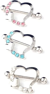 Amazon Com Jewelry Set Kit Lot Of 2pcs 316l Surgical Steel 14 Gauge Nipple Piercings Barbells Shields Rings Nipplerings With Pink Heart Shaped Rhinestones Crystals Closures Beauty