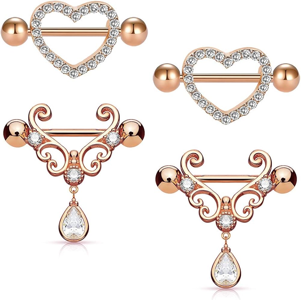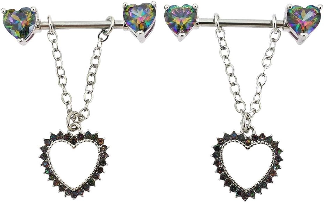 Jforyou 2 Pair Nipple Rings Heart Filigree With Tear Drop Cz Dangle Nipple Bars Barbells Rings 14g 316l Stainless Steel Nipple Piercing Amazon Co Uk Jewellery
