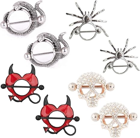 Amazon Com Irbingnii Nipple Rings Surgical Steel 14g Nipple Piercings For Women Nipple Bars Jewelry Red Heart With Arrow Skull Spider Snake 4 Pairs Everything Else