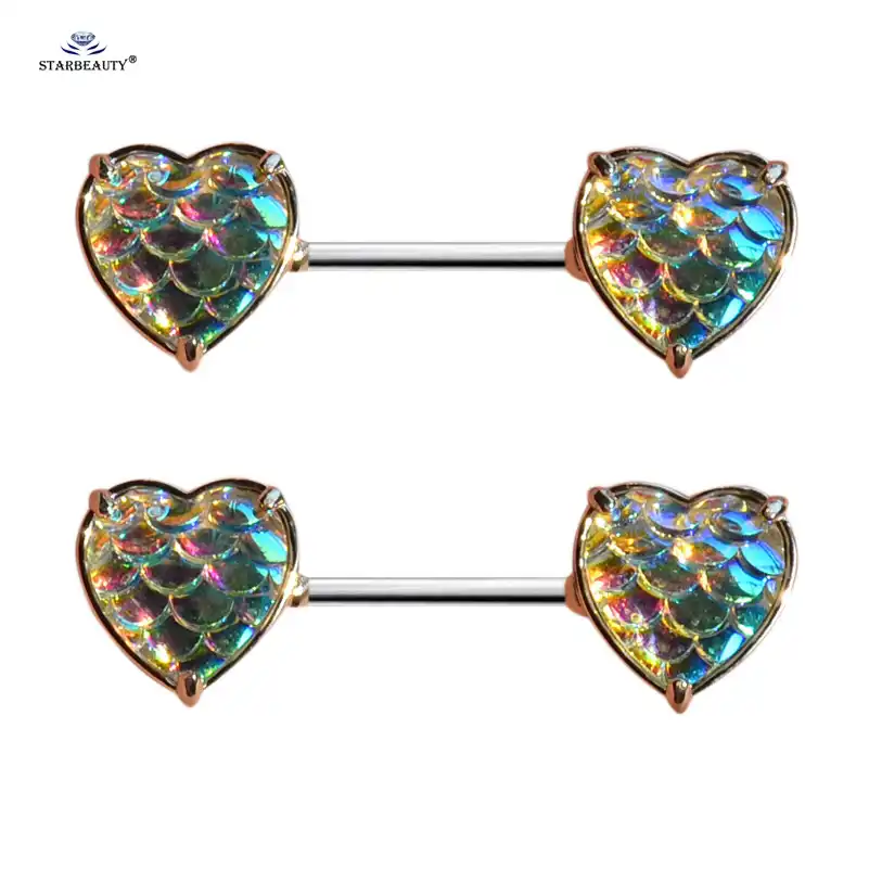 Starbeauty 2pcs 14g Charming Fish Scales Nipple Ring Helix Earrings Gem Sexy Heart Nipple Piercing Stainless Steel Body Jewelry Body Jewelry Nipple Piercing Shieldnipple Ring Aliexpress