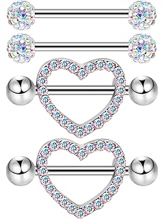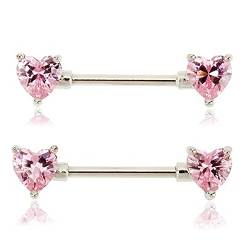Amazon Com Jewelry Set Kit Lot Of 2pcs 316l Surgical Steel 14 Gauge Nipple Piercings Barbells Shields Rings Nipplerings With Pink Heart Shaped Rhinestones Crystals Closures Beauty