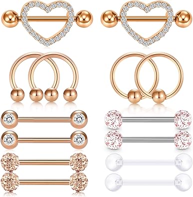 Amazon Com Kokoma 14g Love Heart Cubic Zirconia Nipple Rings Bar 316l Stainless Steel Tongue Ring Barbell Piercing Body Jewelry Rose Gold Jewelry
