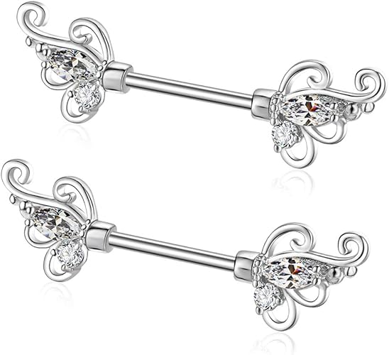 Amazon Com Gabry Jwl 2pcs Vintage Flower Nipplerings 14g Stainless Steel Straight Barbell Nipple Ring Floral Filigree Inlay Cubic Zirconia Butterfly Wings Nipple Piercing For Women Bar Lengh 14mm Silver Jewelry