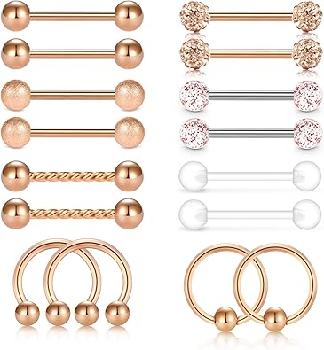 Mayhoop 16pcs 14g Nipple Bar Nipple Ring Stainless Steel Rose Gold Horseshoe Rings Nipple Shield Barbell Ring Tongue Bars Body Piercing Jewellery Amazon Co Uk Jewellery