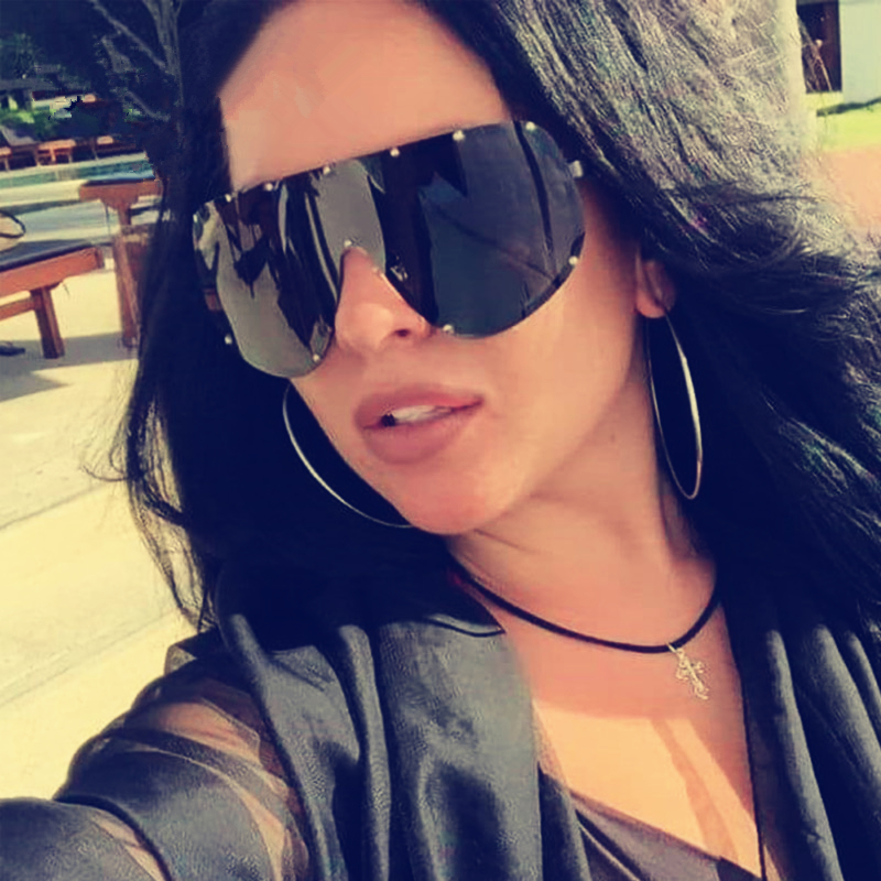 Vova Oversized Sunglasses Women Rivet Brand Designer Celebrity Kim Kardashian Sexy Sun Glasses For Women Flat Top Ladies Female