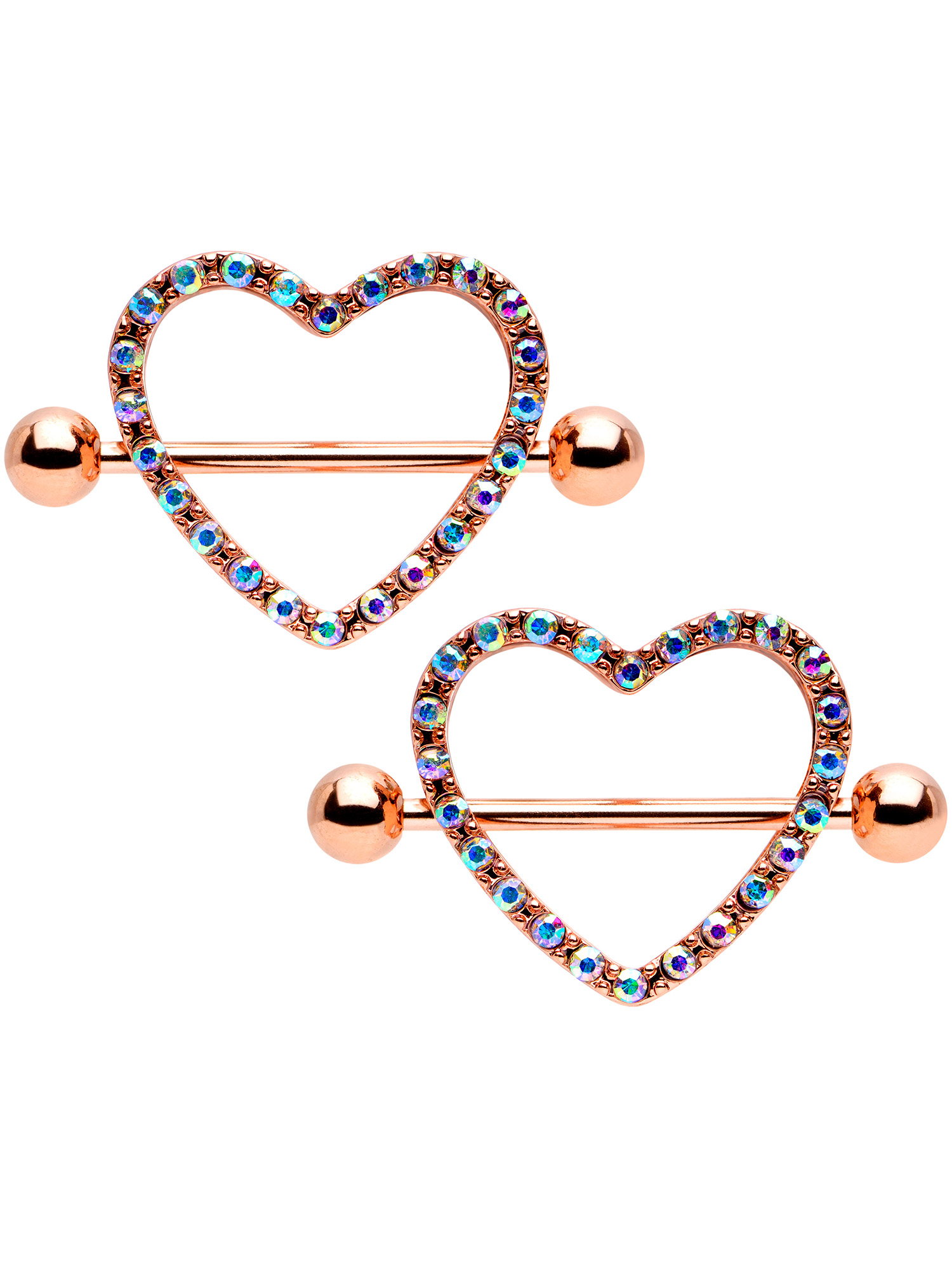 Body Candy Body Candy 14g Women Nipplering Rose Gold Tone Anodized Steel 2pc Aurora Accent Heart Nipple Shield Set 16mm Walmart Com Walmart Com