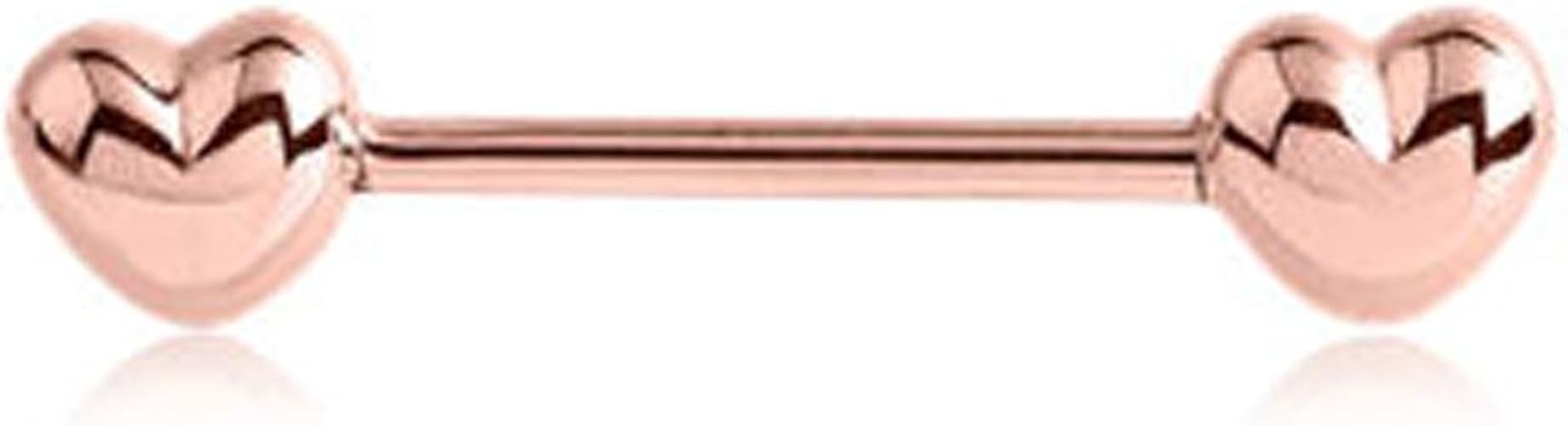 14g 14mm Surgical Stainless Steel Rose Gold Heart Nipple Bar Oufer Body Jewelry