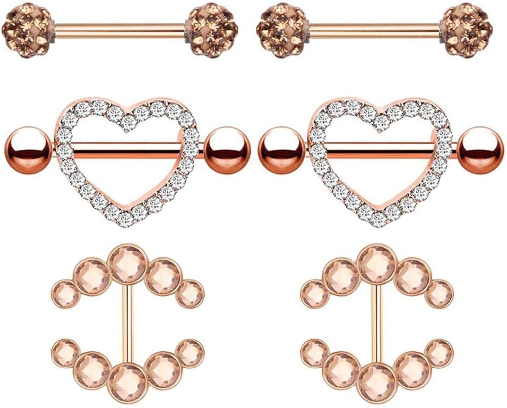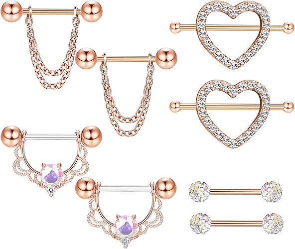 Amazon Com Florideco 4 Pair 14g Stainless Steel Nipple Tongue Rings For Women Cz Nipplering Piercing Set Barbell Heart Shaped Body Jewelry Rose Gold Tone Jewelry