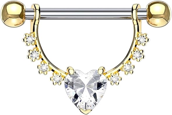 Beyoutifulthings Clear Large Heart Nipple Intimate Piercing Breast Piercing Stainless Steel Silver Gold Rose Gold Clear Pink Bar 1 6 Mm 12 Mm Gold Clear Amazon Co Uk Jewellery