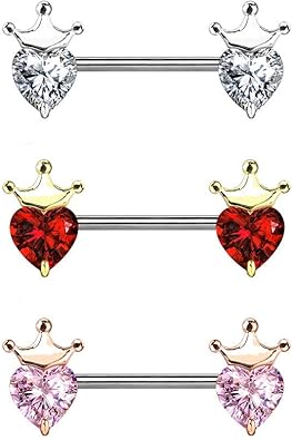 Beyoutifulthings Nipple Piercing Heart Crown Nipple Piercing Surgical Steel Silver Gold Rose Gold Bar 1 6 14mm Set Amazon Co Uk Jewellery