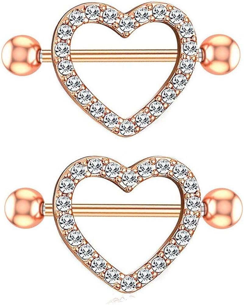 Heart Nipple Shield Ring 14g Pair Rose Gold I P Piercing Barbell With Cz Gems Ebay